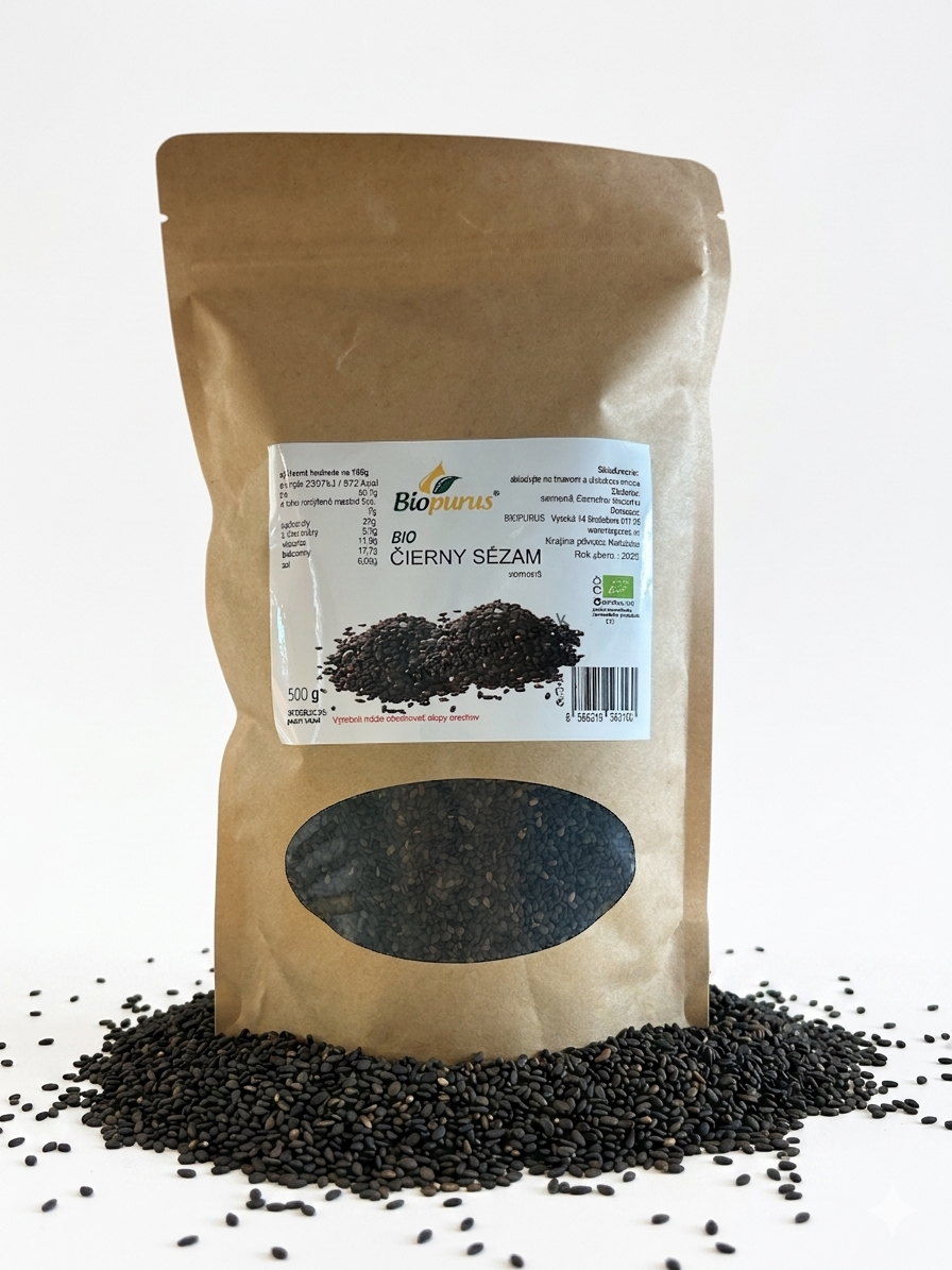 - Zloženie:BIO semená sezamu čierneho 100%